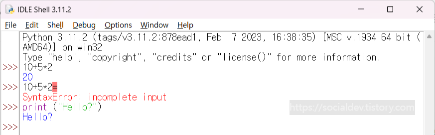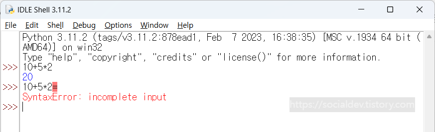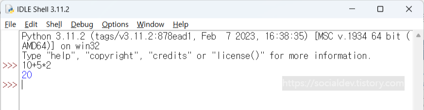 산수를 입력하면 IDLE 에서 자동을 계산을 해준다.