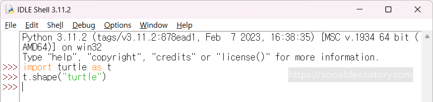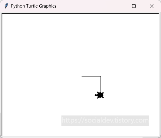 명령어를 입력하면 새로운 창에 거북이 한마리가 나타난다!