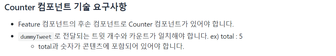 - Features 컴포넌트에 <div className="tweetForm__wrapper"> 하위에 <Counter /> 작성한다.