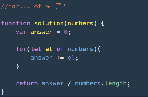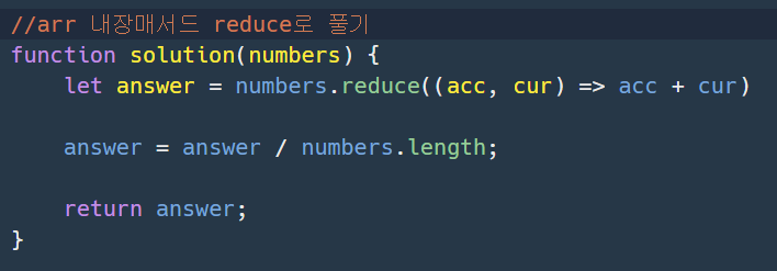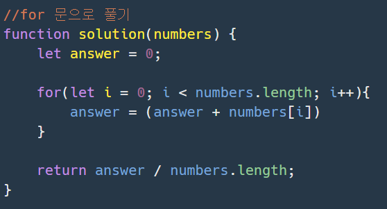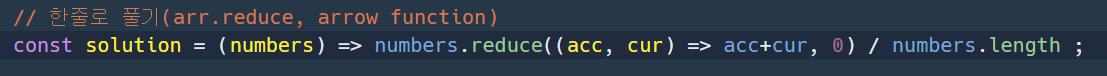 문제] 정수 배열 numbers가 매개변수로 주어집니다. numbers의 원소의 평균값을 return하도록 solution 함수를 완성해주세요.