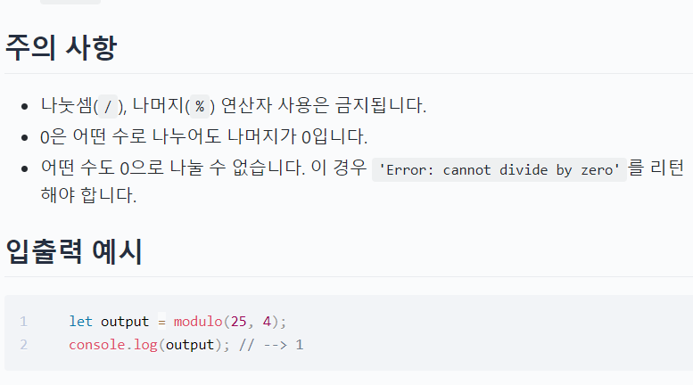 우선 주의사항에 나눗셈과 나머지 연산자 사용이 금지된다고 한다.